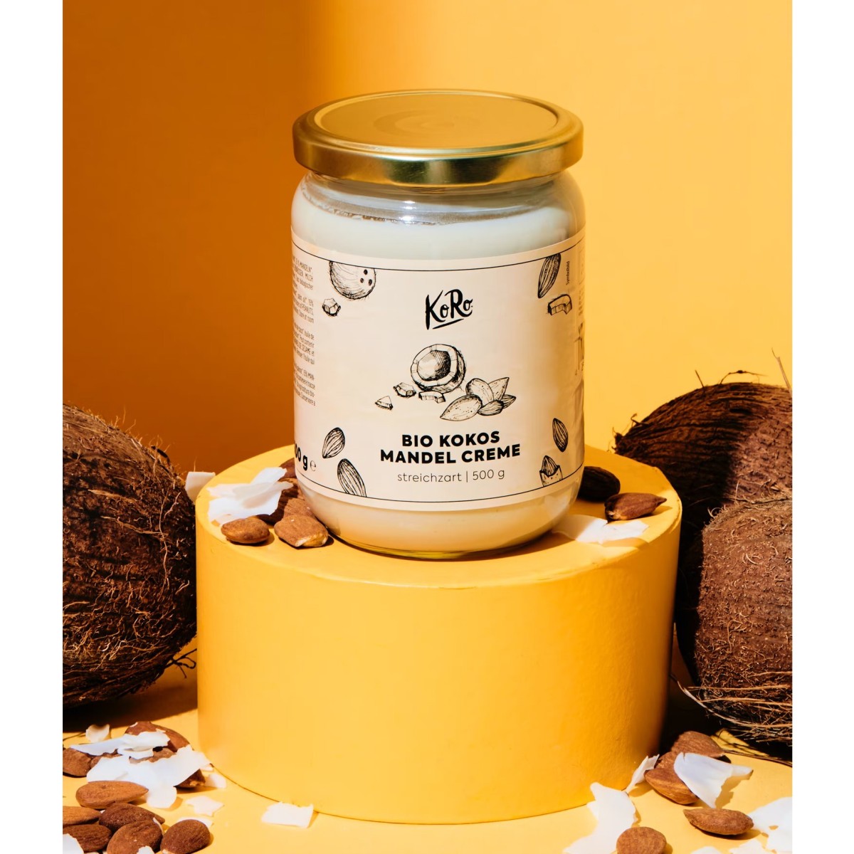 The coconut and almond cream from KoRo is an all-round talent: it is excellent as a spread, but also as a topping for a breakfast bowl. With its slightly sweet taste and the flavor trio of coconut, almonds and vanilla, it gives your next dessert that extra touch. Why not try the recipe for the chocolate coconut bar or coconut balls? Of course, like our other nut spreads, it is also delicious on its own, straight from the jar!