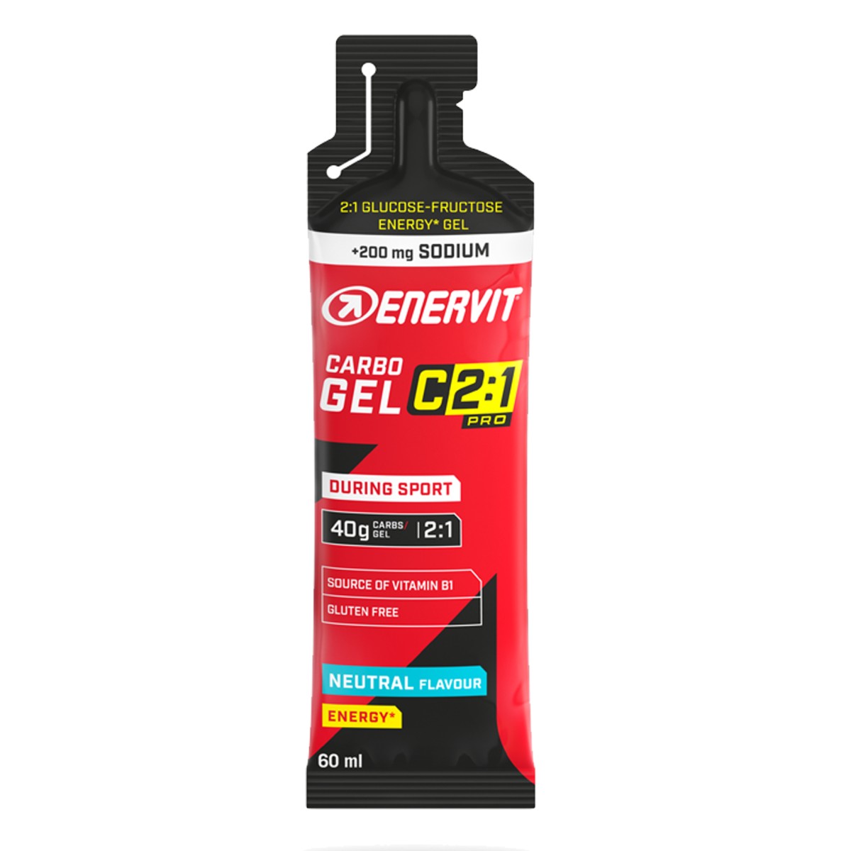 Enervit Carbo Gel C2:1PRO Neutral with Sodium is the exclusive energy gel based on maltodextrin and fructose in a 2:1 ratio.