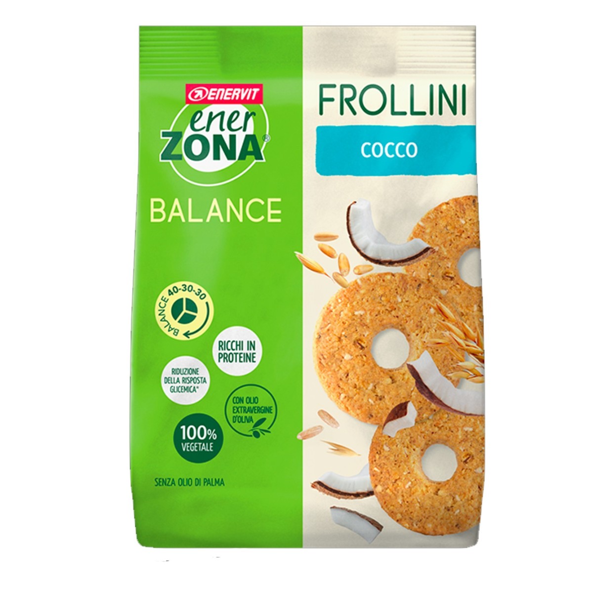 Farina di soia (39%) - Zucchero di canna - Olio extravergine di oliva (12%) – Amido resistente di mais (8%) - Proteine idrolizzate del frumento (7,2%) - Farina di grano khorasan (Kamut®) (6,2%) - Farina di frumento (5,4%) – Farina integrale di farro (2,8%) - Farina di avena (2%) - Emulsionante: lecitine (da soia) - Pasta di nocciole - Aromi - Cocco essiccato in scaglie (0,5%) – Agente lievitante: carbonati di sodio - Sale.