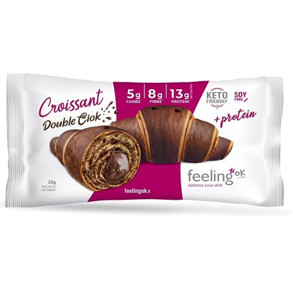 proteine del GRANO, proteine d'AVENA, proteine di riso, fibra di acacia, fibra di FRUMENTO, BURRO, olio d'oliva, crema al cacao (proteine di pisello, proteine di AVENA, cacao, proteina del riso, eritritolo, fibra di cacao , olio d'oliva, NOCCIOLE, olio di semi di girasole), cacao in polvere (5%), emulsionante: lecitina di girasole, e471, sale, lievito naturale, conservanti: potassio sorbato, edulcoranti: sodio ciclamato, aroma di vaniglia.