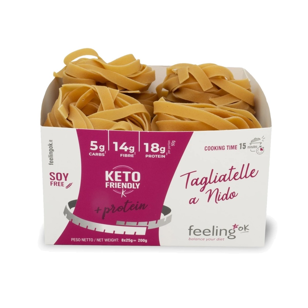 +39 328 102 6993Tagliatelle a Nido Classiche 200g di FEELING OK sono delle squisite tagliatelle che contengono tutto il gusto della classica pasta all'uovo, ma con meno carboidrati e più fibre a basso indice glicemico.