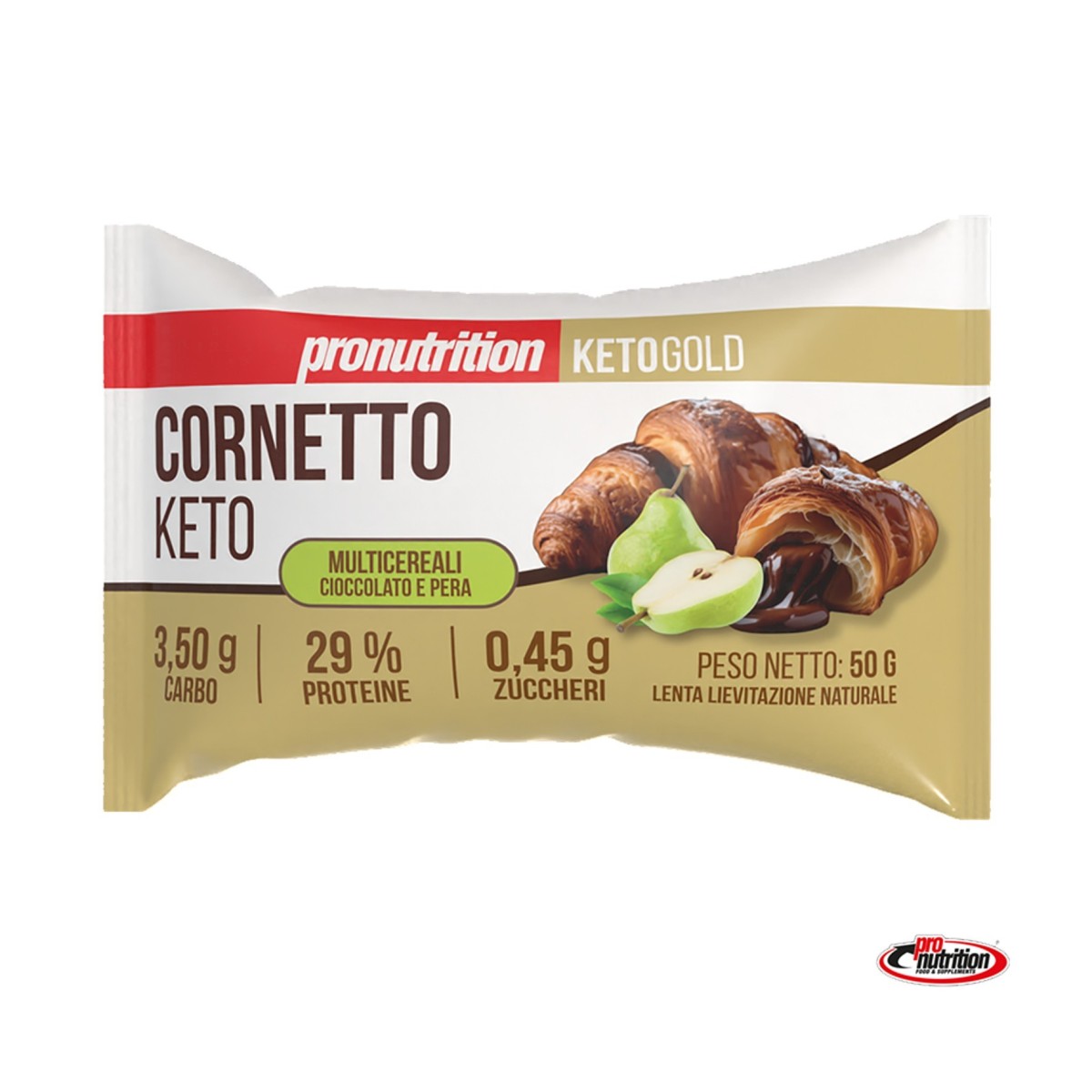 I laboratori pasticceri di Pronutrition hanno compiuto un vero e proprio miracolo culinario realizzando un cornetto con un gusto ed una fragranza tale e quale al cornetto del bar, ma comunque in perfetto stile cheto a bassissimo tenore di carboidrati e con un ripieno di cioccolato, avvolgente e gustoso.