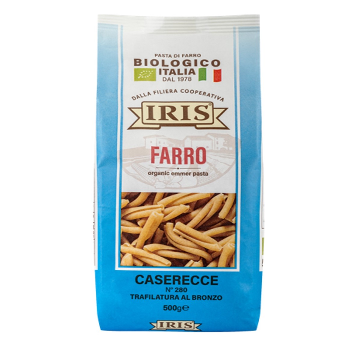 +39 328 102 6993Le caserecce di farro IRIS, realizzate con trafila in bronzo, offrono una cottura perfetta e ideale per trattenere sughi e condimenti.