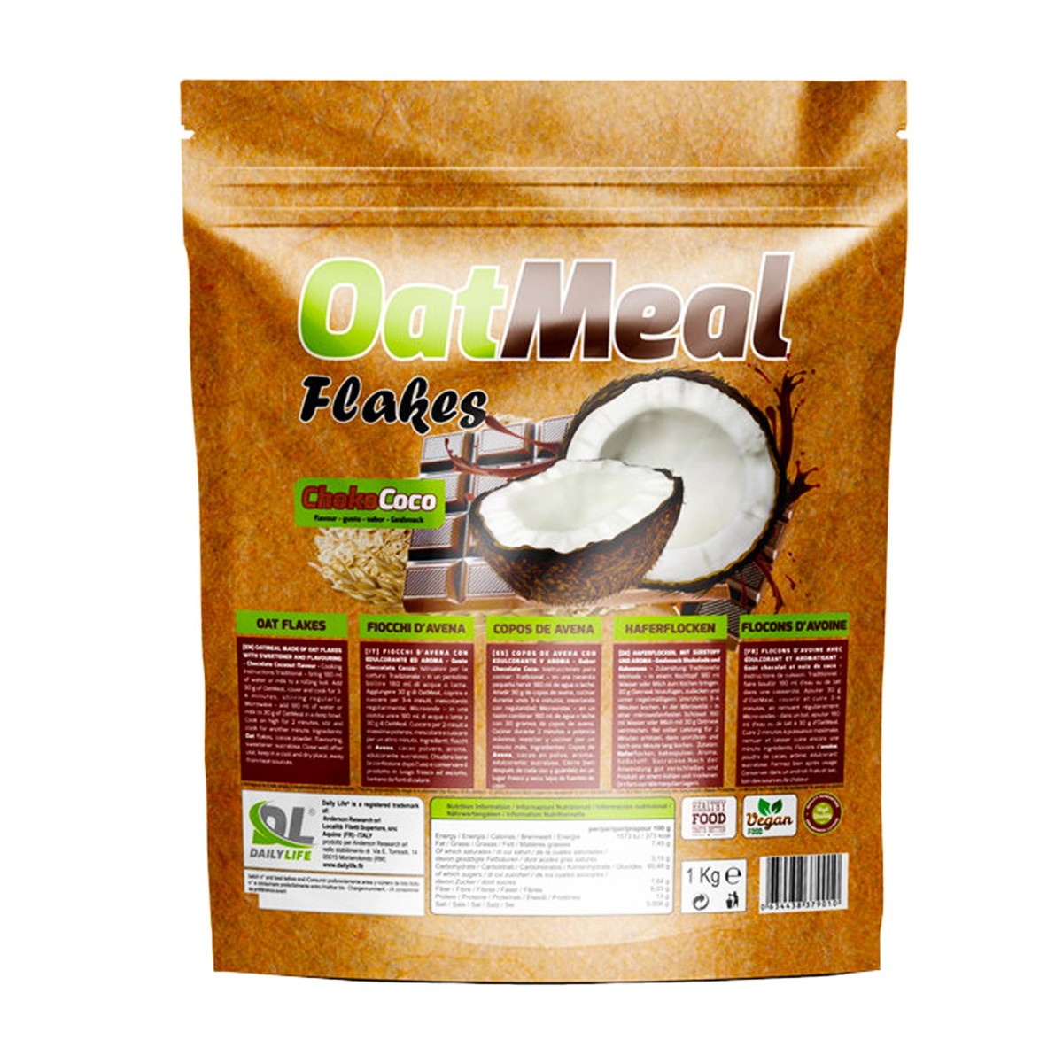 OatMeal Flakes è un prodotto ottenuto dalla pulizia e dalla cottura a vapore delle cariossidi (semi) dell’avena sativa per ammorbidire la semola e renderla lavorabile. Il chicco viene sottoposto ad elevate pressioni ed infine tostato per disidratare e stabilizzare la struttura del fiocco; grazie alle gustose aromatizzazioni, i fiocchi d’avena diventano la soluzione ideale per la vostra colazione – deliziosi con latte freddo o tiepido ed ottimi cotti – perfetti per i prodotti da forno e nelle invenzioni culinarie più disparate.
