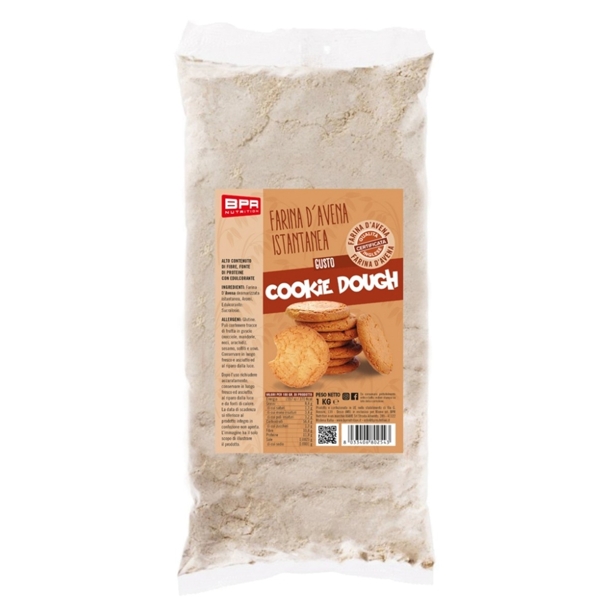 +39 328 102 6993Farina d'Avena Aromatizzato al gusto Cookie Dough.