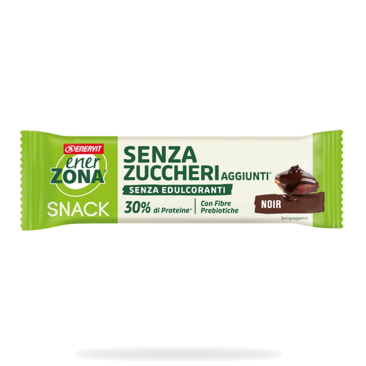 Parte della nuova linea EnerZona Snack, la Snack Bar Noir è stata appositamente sviluppata utilizzando un’innovativa copertura al cacao, in cui lo zucchero e gli edulcoranti tradizionali sono stati sostituiti da fibre vegetali prebiotiche◆, per ottenere un prodotto senza zuccheri aggiunti, senza edulcoranti e a ridotto impatto glicemico, senza rinunciare al gusto.