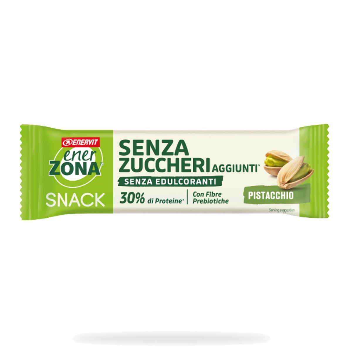 Parte della nuova linea EnerZona Snack, la Snack Bar Pistacchio è stata appositamente sviluppata utilizzando un’innovativa copertura bianca al latte, dove lo zucchero e gli edulcoranti tradizionali sono stati sostituiti da fibre vegetali prebiotiche◆, per ottenere un prodotto senza zuccheri aggiunti, senza edulcoranti e a ridotto impatto glicemico, senza rinunciare al gusto. L'assunzione di alimenti contenenti carboidrati non assimilabili◆ anziché zuccheri induce un minore aumento del glucosio ematico dopo la loro assunzione rispetto agli alimenti/bevande contenenti zucchero.
