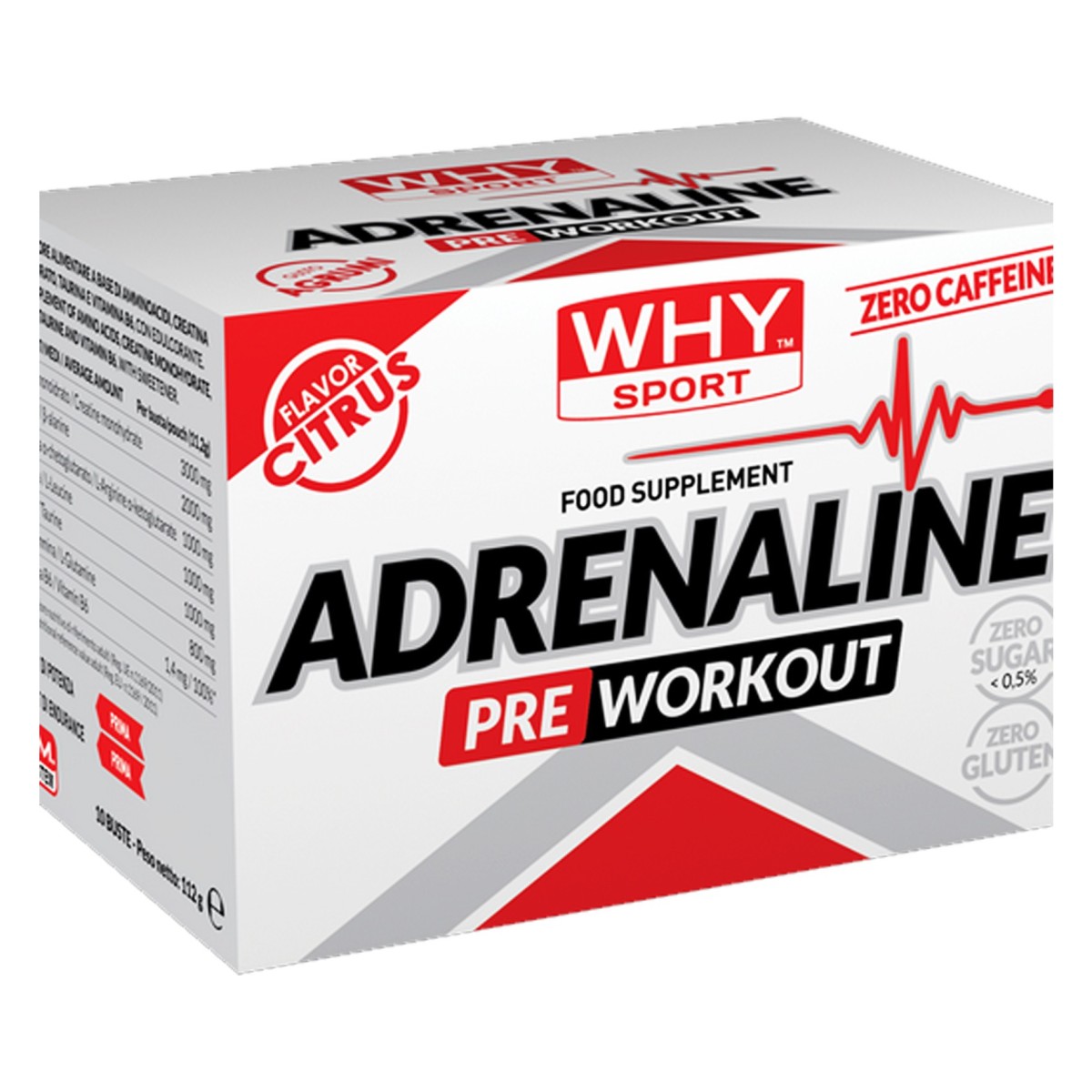 creatina monoidrato, beta-alanina, aroma, L-arginina alfa-chetoglutarato, L-leucina, taurina, L-glutammina, acidificante (acido citrico), agente antiagglomerante (biossido di silicio), addensante (gomma di xanthan), edulcorante (sucralosio), colorante (riboflavina), vitamina B6 (piridossina cloridrato).
