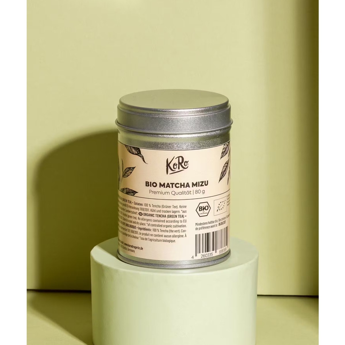 Hai appena visto quei dolcetti giapponesi dai colori sgargianti e non vedi l’ora di ricrearli a casa? Vuoi provare a fare in casa il tuo matcha latte? Allora ti serve sicuramente il matcha mizu bio di KoRo! Questa polverina verde ha conquistato ormai tutto il mondo, con il suo aroma intenso e il colore brillante. Proprio come il caffè, il matcha contiene caffeina. Ma in termini di sapore, i due differiscono molto: il matcha ha un sapore molto più avvolgente e meno amaro del caffè. Non lo conosci ancora? Provalo subito e acquista il matcha mizu bio di KoRo.